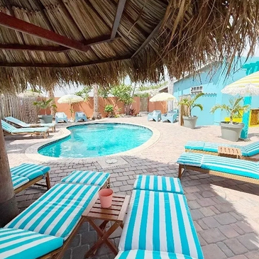 At Palms Escape Suites, we offer a serene escape surrounded by lush landscapes within 15min walking distance to the beautiful beaches and restaurants of Aruba.